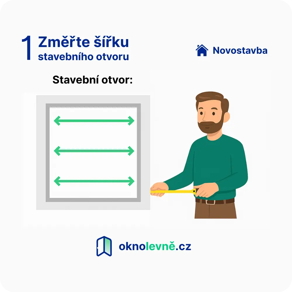 Při zaměřování se má vycházet z nejmenší naměřené hodnoty (šířky i výšky). Průměr nebo větší rozměr může způsobit, že se okno nevejde do stavebního otvoru – a bude potřeba sekat zdivo.