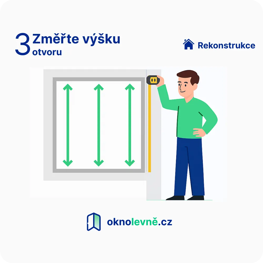 U rekonstrukce je nutné měřit z venkovní strany, protože tam bude nové okno usazeno. Měření zevnitř může zkreslit výsledek – rám nebude správně lícovat s ostěním nebo fasádou.